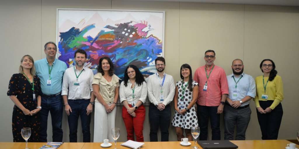 VÍNCULO 1667 – Integrantes da Comissão NPCS, que representa os novos empregados do BNDES, foram recebidos na quarta-feira (5) pela Administração do Banco. Aline Moreira Gomes, Bruno Tot Maluf e Pedro Vianna da Costa e Faria, acompanhados do presidente e do vice-presidente da AFBNDES, Jorge Schettini e Wellington Basílio, respectivamente, trataram de questões relacionadas ao plano de carreira e ao plano de saúde, encaminhando propostas para a solução de problemas em relação a ambos os temas.