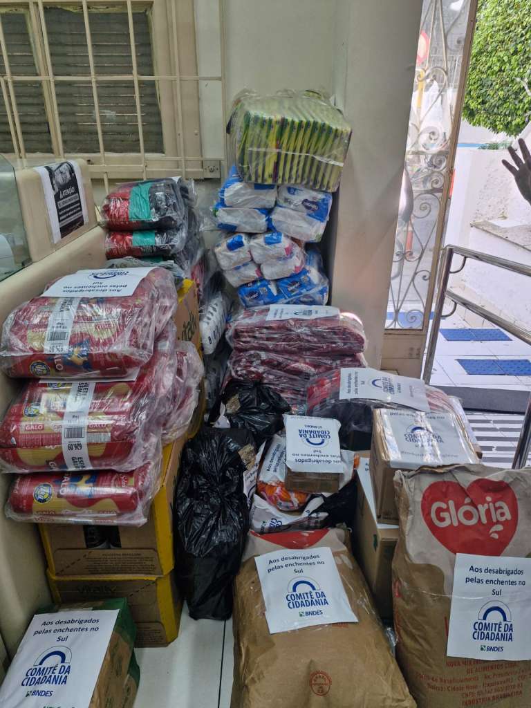 “Semana passada seguiram mais 15 caixas para a Base Aérea do Galeão, e hoje (12/6) recebemos compras que preencherão outras 19 caixas, que estão sendo embaladas. Com as 249 já enviadas, passam a ser 283 as que o Comitê da Cidadania dos Empregados do BNDES destinou à população atingida pelas enchentes”, informa Bruno Malburg, coordenador do Comitê.