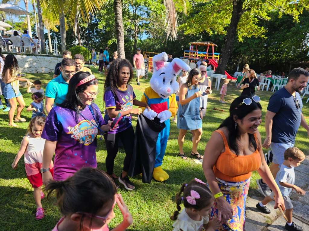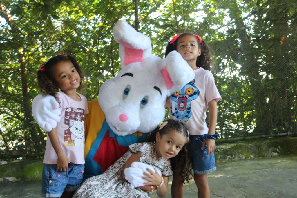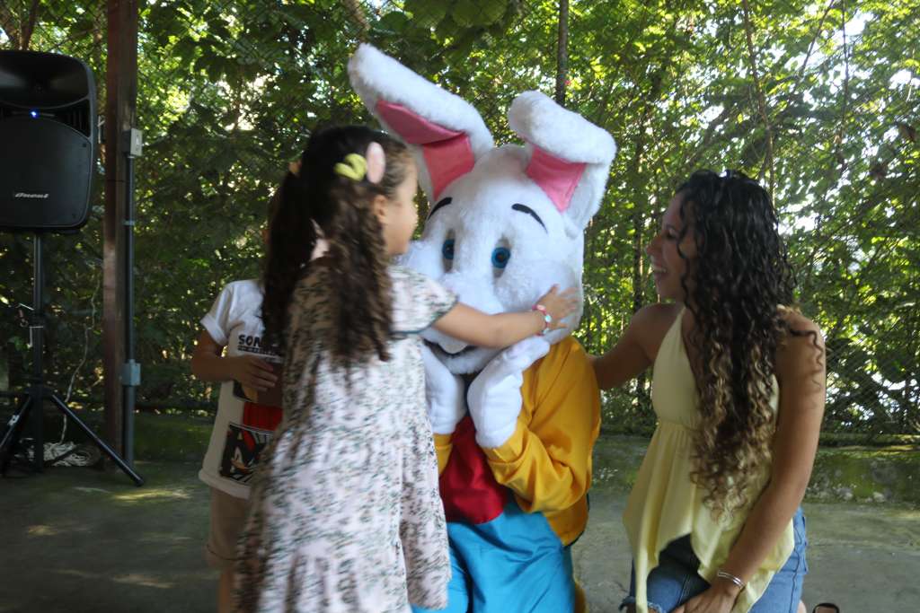 O “popstar” do evento não poderia ser outro: o Coelhão da Páscoa! Esbanjando carisma, ele não parou um segundo. Distribuiu abraços, posou para centenas de fotos, arriscou passinhos de dança e brincou com todo mundo.
