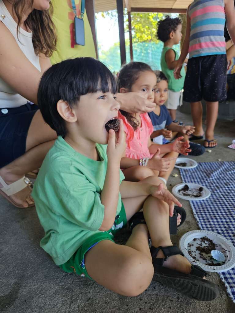 O Mágico Carvalho deu um show de ilusionismo e, acompanhado do ventríloquo macaco Álex, arrancou gargalhadas e olhares curiosos da plateia mirim (e dos adultos também!). O evento contou ainda com uma deliciosa oficina de brigadeiros, onde os pequenos viraram verdadeiros minichefs: colocaram a mão na massa e enrolaram seus próprios doces. As brincadeiras ficaram por conta dos animados recreadores da Turma do Tio Salsicha, que não deixaram ninguém ficar parado. O dia foi regado a muita pipoca e, claro, a chocolate, que não podia faltar!