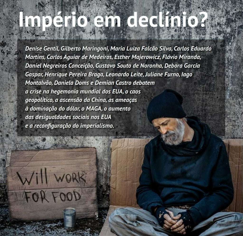 Demian Castro, da UFPR, aponta a dificuldade dos EUA de manter a dominação do dólar, o aumento das desigualdades sociais e a supremacia do complexo militar-industrial nas decisões estratégicas.